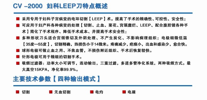 康威CV-2000婦科環切LEEP刀采用專用于婦科子宮(gong)病變的電環切割(LEEP)術(shu)。提高了手術(shu)的精確性、可(ke)控性、安全性;