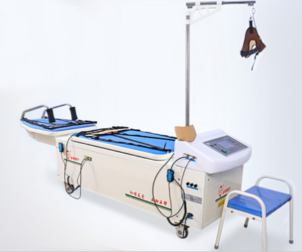 ·患者(zhe)下(xia)肢(zhi)朝向控制(zhi)臺仰臥(wo)或(huo)俯(fu)臥(wo)于床面上, 醫生(sheng)可(ke)根據病情而定, 然后將(jiang)牽引(yin)帶分別系緊病人的肋骨下(xia)緣(yuan)及胯(kua)骨上緣(yuan),適(shi)當(dang)系緊,同時將(jiang)腋托放到腋部,患者(zhe)手持控制(zhi)器,若有不適(shi)按“急退”鍵(jian),即可(ke)迅速(su)解除牽引(yin)力。
